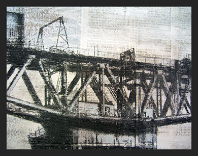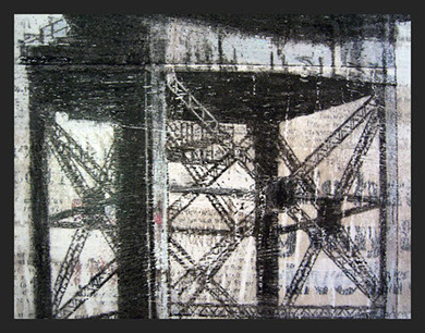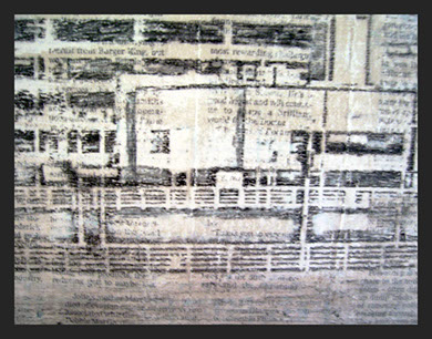 Media: Newspaper, paint, ink, media gel, charcoal and chalk.